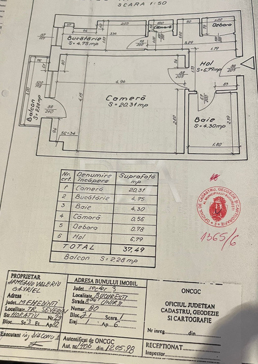 Garsoniera are o suprafață totală de 39,77 mp și sunt împărțiți în felul următor: