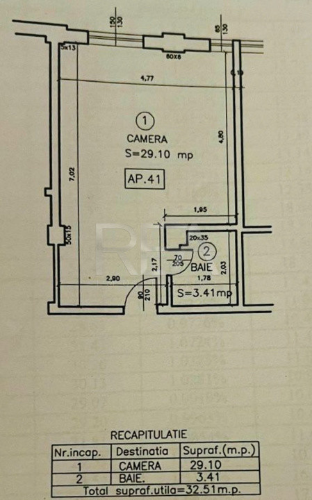 Garsoniera se află la etajul 2 al unui bloc cu 4 etaje și are o suprafață utilă totală de 32 mp.