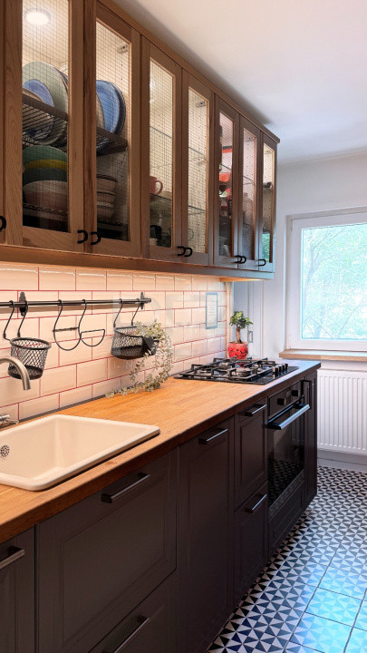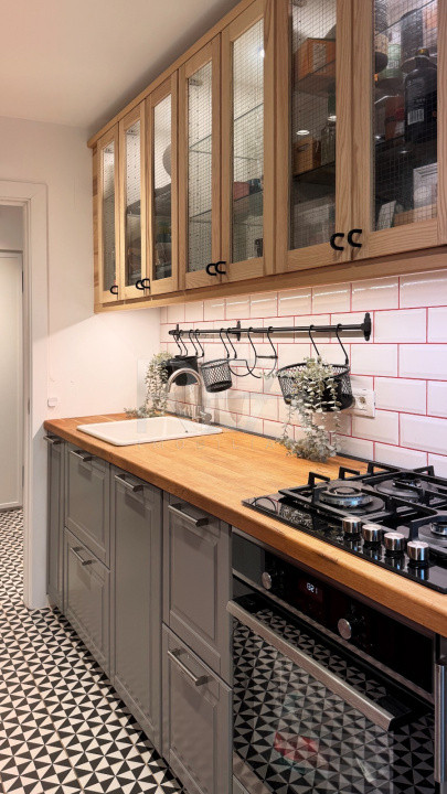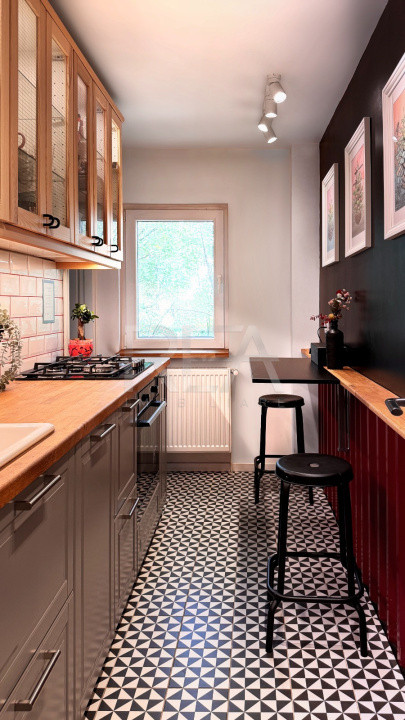 - Bucătărie: mobilier IKEA cu iluminare integrată, cuptor, plită, mașină de spălat vase, chiuvetă, masă rabatabilă cu două scaune;