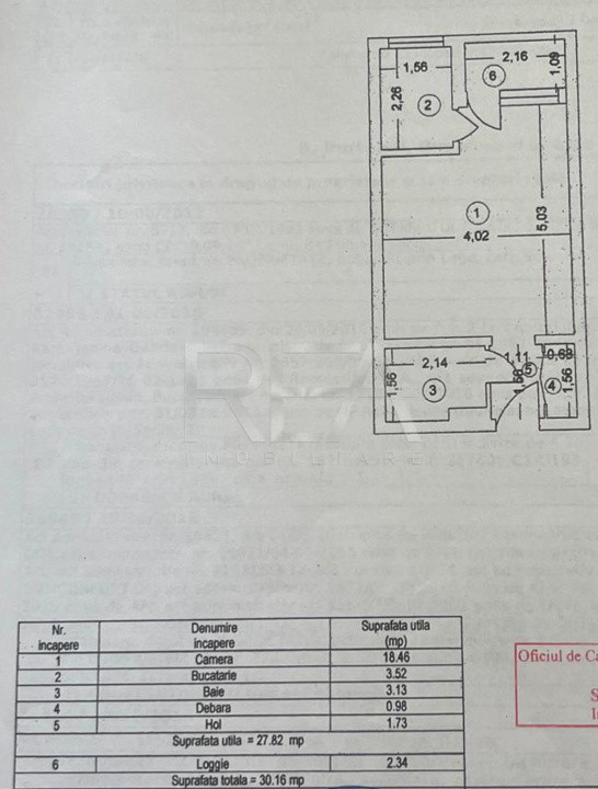 Se află la etajul 3 al unui bloc cu 10 etaje și are o suprafață utilă totală de 30 mp, din care 2 mp sunt reprezentați de balcon.