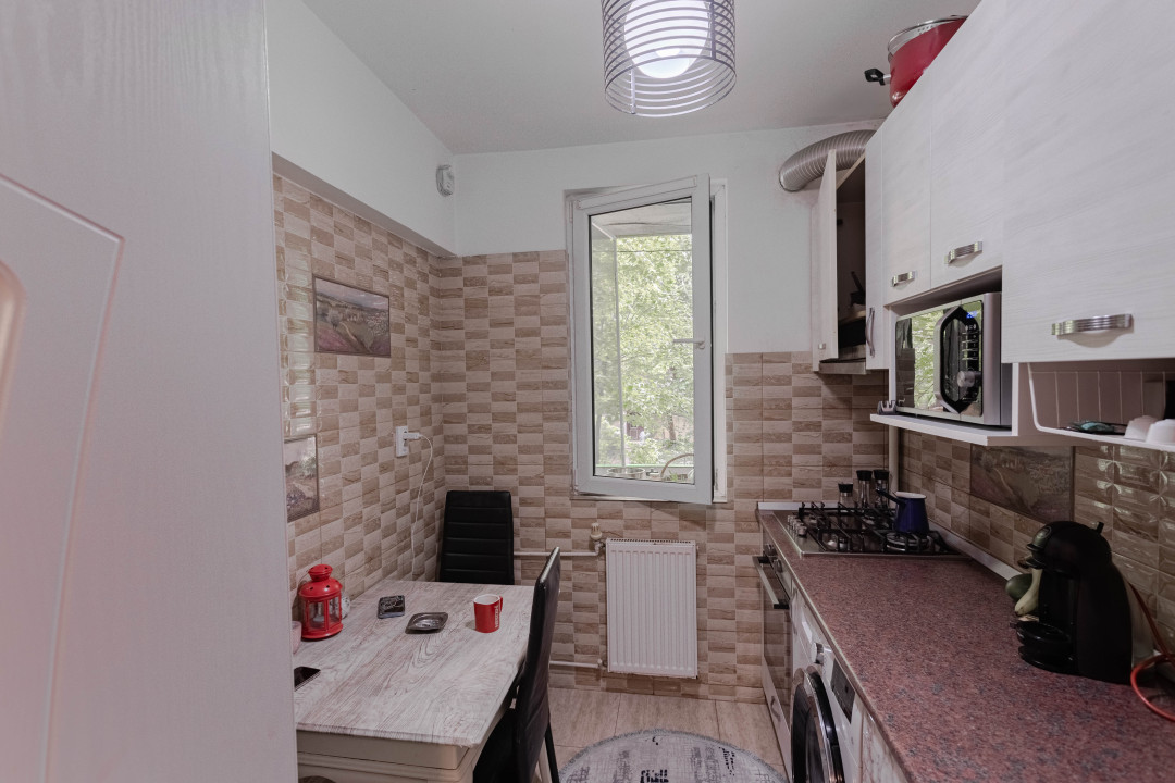 Apartamentul se vinde partial mobilat si utilat, fara TV-uri, o canapea, un fotoliu si cuptorul cu microunde.