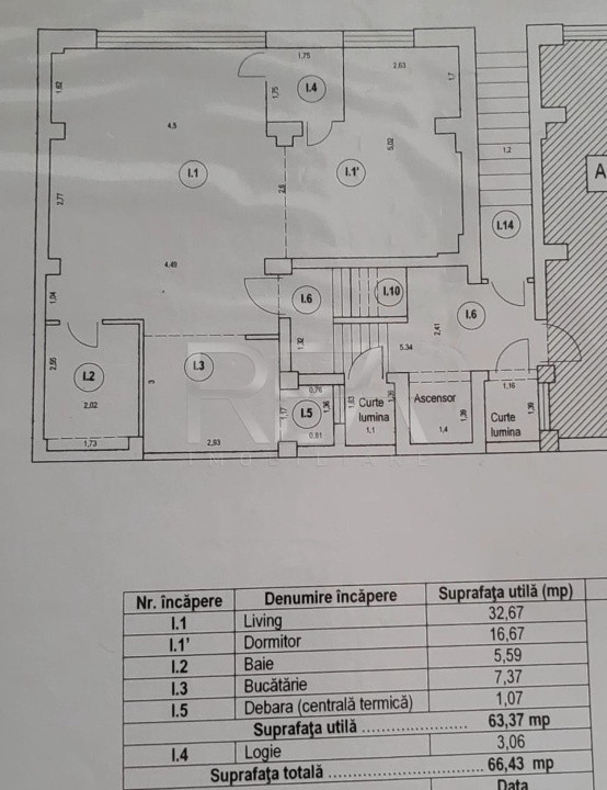 Apartamentul se află la etajul 1 al unui imobil cu 5 etaje, având o suprafață utilă de 66 mp, din care 3 mp reprezintă balconul.