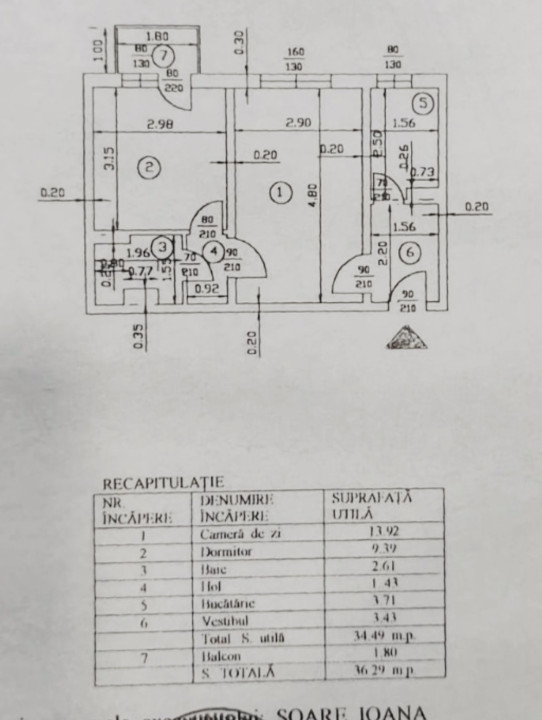 Apartamentul detine o suprafata construita de 44 m.p, din care suprafata utila este de 36,29 m.p.