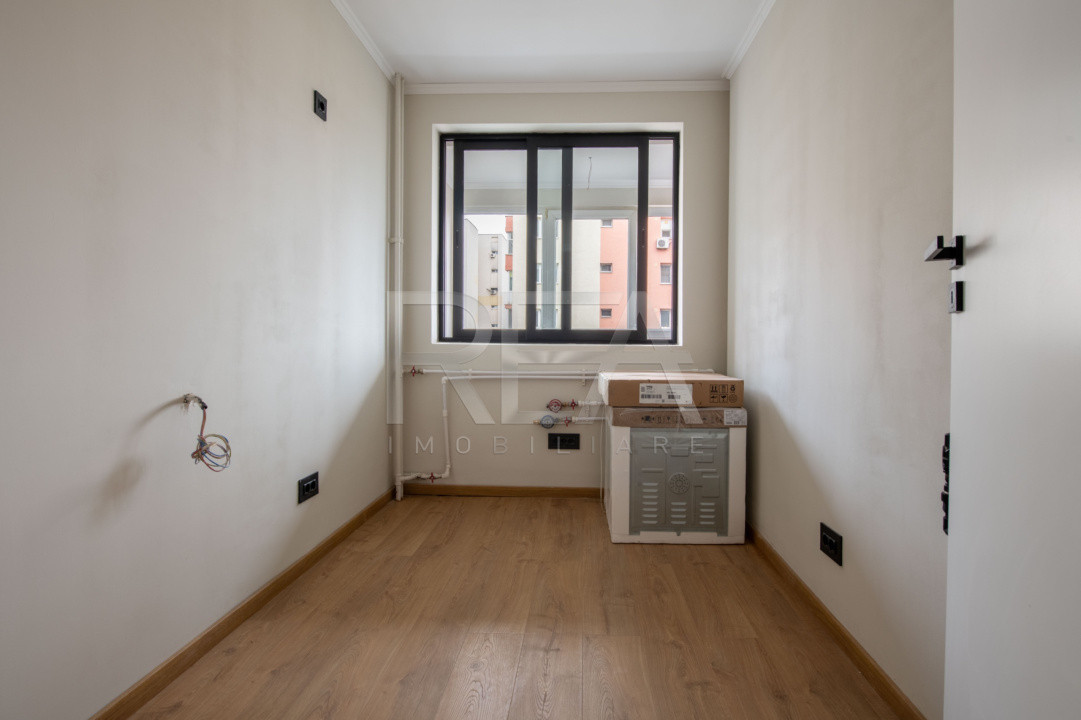 Baia este complet utilata si dotata cu dus walk-in cu sticla securizata, iar incalzirea este asigurata prin sistemul de termoficare centralizat al blocului. Toate echipamentele din apartament functioneaza electric, bucataria fiind prevazuta pentru utilizarea plitei si cuptorului electric.