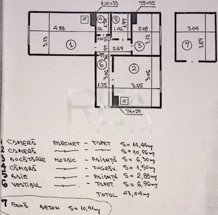 - Suprafață totală de 53,95 mp: 43,04 mp utili+ 10,91 mp boxă la demisol.