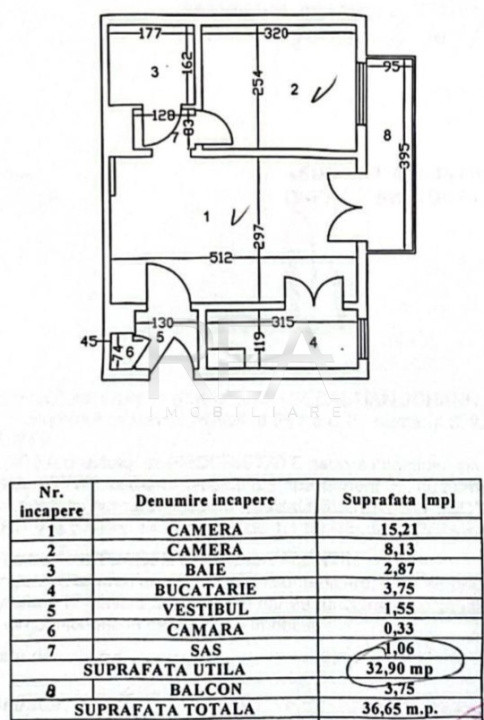 Compartimentare: living, dormitor, bucătărie, baie și balcon.