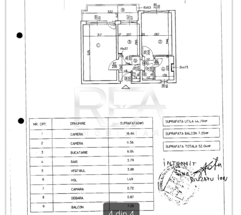 Apartamentul are o suprafață totală de 52,04 mp, din care 44, 79 mp utili, balcon de 7,25 mp, perfect integrat în zona de zi.