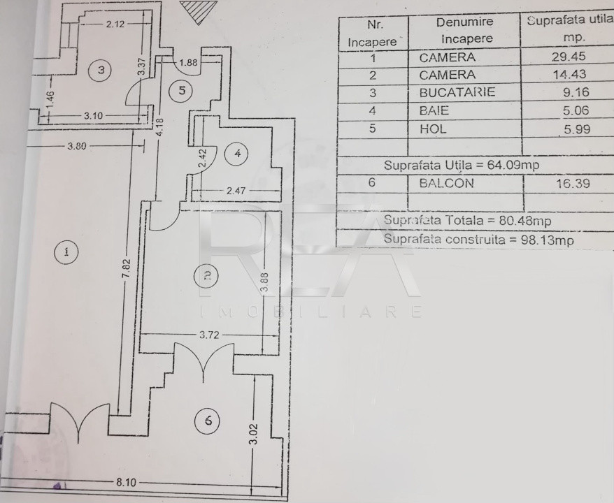 - Suprafata totala de 80,48 mp: 64,09 mp utili+ 16,39 mp balcon.