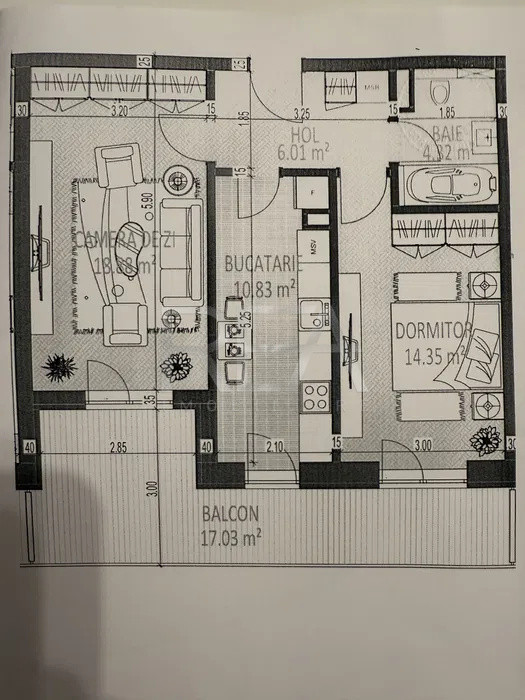 Suprafața totală 71,42 mp, din care 54,39 mp utili, balcon generos de 17,03 mp, accesibil din toate camerele și potrivit pentru relaxare sau ca spațiu de dining.