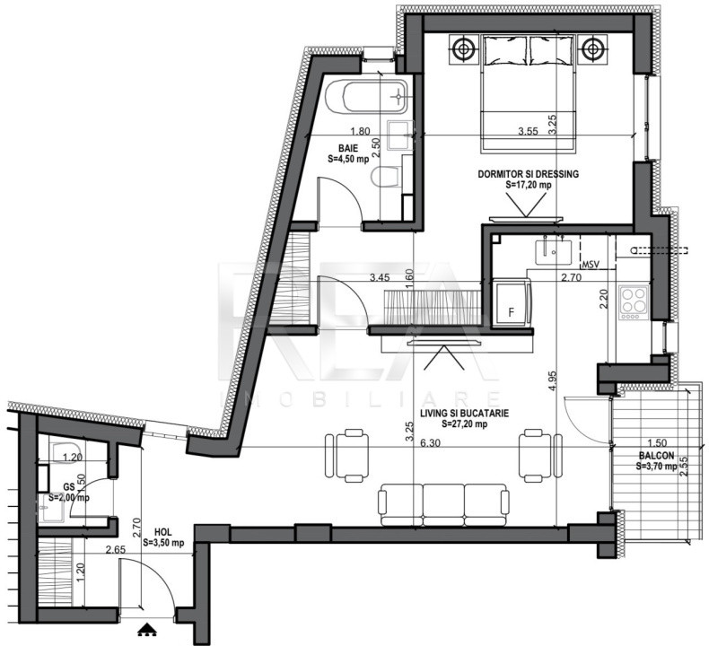 - Suprafață totală de 58,10 mp: 54,40 mp utili+ 3,70 mp balcon.