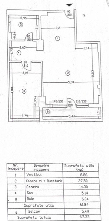 Se află la etajul 6 al unui bloc cu 6 etaje și are o suprafață utilă totală de 67 mp, din care 5 mp sunt reprezentați de balcon.