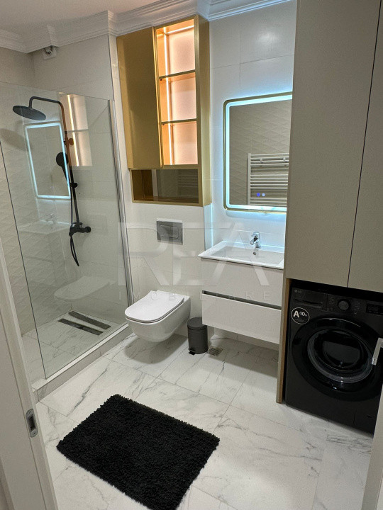 • Baie de 6,0 mp, hol de 1,5 mp, şi vestiar (vestibul) de 6,8 mp — atmosferă de „apartament boutique”, nu doar un spațiu de tranzit.