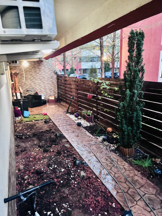 Imobilul se afla intr-un bloc de 3 etaje, construit in anul 2014, fiind situat la parter si detine o curte proprie de 55 m.p.