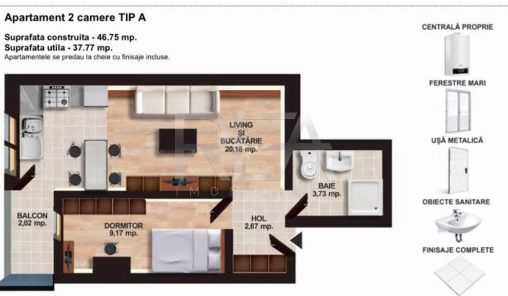 R.E.A. Imobiliare apartament, 2 camere, situat la etajul 1/8, in zona Prelungirea Ghencea, intr-un imobil finalizat in anul 2022. Suprafata totala 37,77 mp, suprafata utila 35,75 mp, balcon 2,02 mp. Configuratie: dormitor, living, bucatarie, baie si balcon. Apartamentul se vinde complet mobilat si utilat. Sistem incalzire: Centrala proprie. In zona se regasesec magazine stradale, puncte farmaceutice, banci, benzinarii, scoli, gradinite. Acces la transportul in comun: 3 minute pana la statiile STB . Pentru detalii si vizionari va rugam sa specificati codul de identificare P6340.