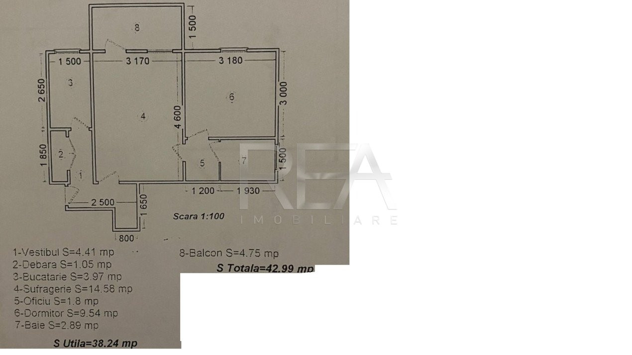 Locuința are o suprafață utilă de 43 mp și este compusă din living, dormitor, bucătărie, baie și balcon. Apartamentul a fost renovat complet, cu înlocuirea instalațiilor sanitară și electrică. Este prevăzut cu instalație pentru boiler, iar conducta de gaz se află pe scară, existând posibilitatea montării unei centrale termice proprii. Confortul termic este asigurat în prezent prin sistemul centralizat de termoficare.