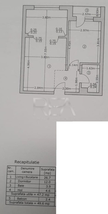 Apartamentul se află la parterul unui imobil cu 3 etaje și are o suprafață utilă de 49 mp, din care 2 mp reprezintă balconul.