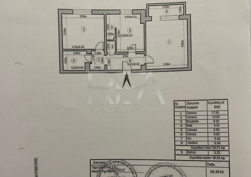 Imobilul are o suprafață totală de 58,53 mp și sunt împărțiți astfel: