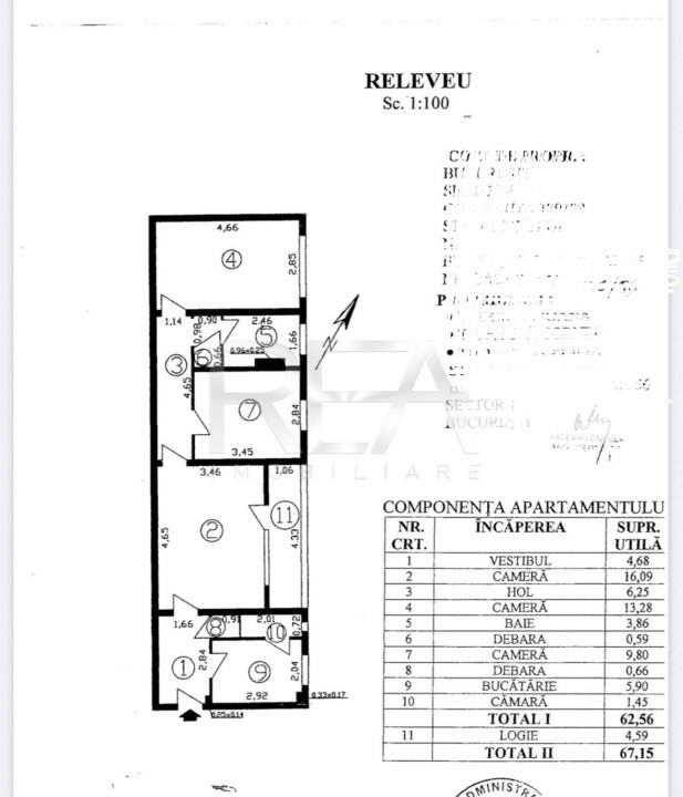 Detine o suprafata totala de 67,15mp din care utili 62,56mp iar restul de 4,59mp fiind alocati unui balcon.