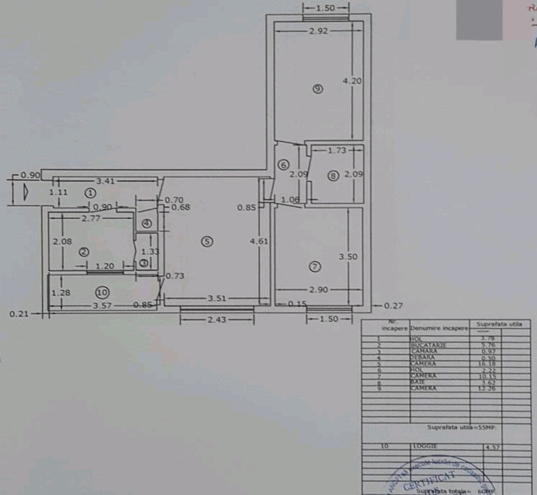 Apartamentul este situat într-un bloc de apartamente construit în 1965, reabilitat termic și fără risc seismic, la etajul 2 din 4. Compartimentarea include un living, două dormitoare, bucătărie, baie și balcon. Suprafața utilă a apartamentului este de 55 mp, oferind un spațiu bine compartimentat.