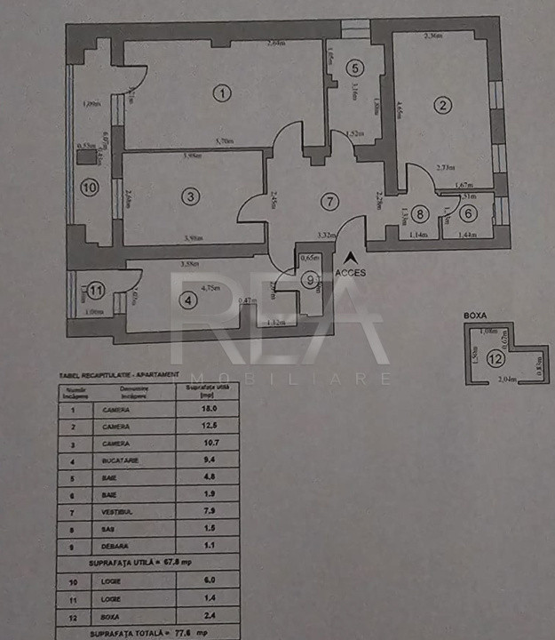 Se află la etajul 9 al unui bloc cu 9 etaje și are o suprafață utilă totală de 75 mp, din care 7 mp sunt reprezentați de cele doua balcoane.