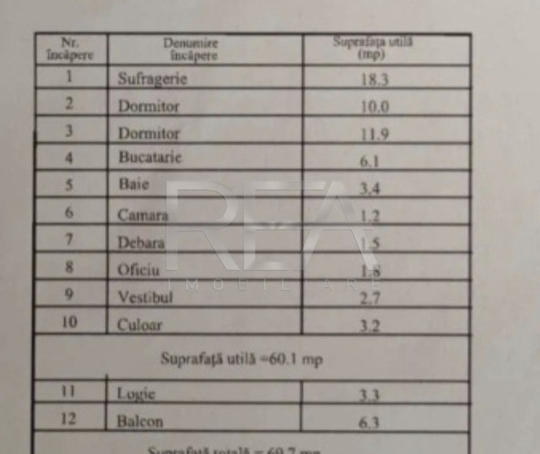 R.E.A. Imobiliare va ofera spre vanzare un apartament cu 3 camere, semidecomandat, situat in Drumul Taberei, pe Str Sibiu. Imobilul se afla intr.un bloc de apartamente construit in anul 1968, fara risc seismic, la etajul 6/8. Este alcatuit din living, doua dormitoare, bucatarie, baie si doua balcoane. Suprafata totala este de 70 mp, din care suprafata utila este de 60 mp. Apartamentul necesita renovare.