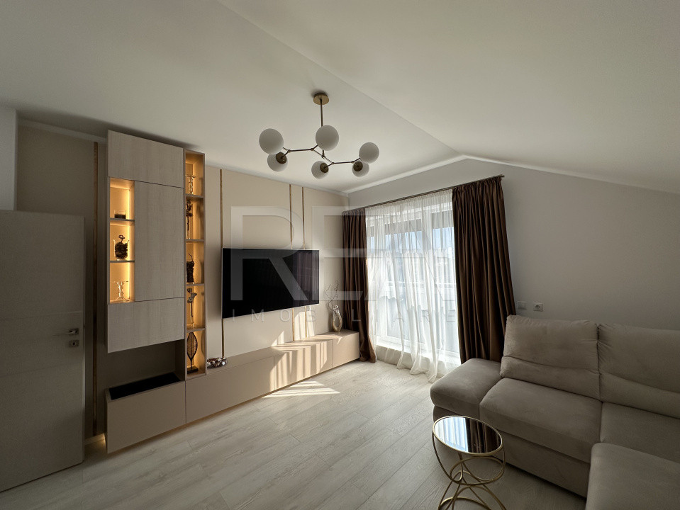 Apartamentul a fost mobilat și decorat de designer, utilizând materiale și finisaje de înaltă calitate, într-un stil contemporan rafinat, care îmbină confortul cu eleganța.