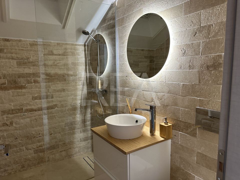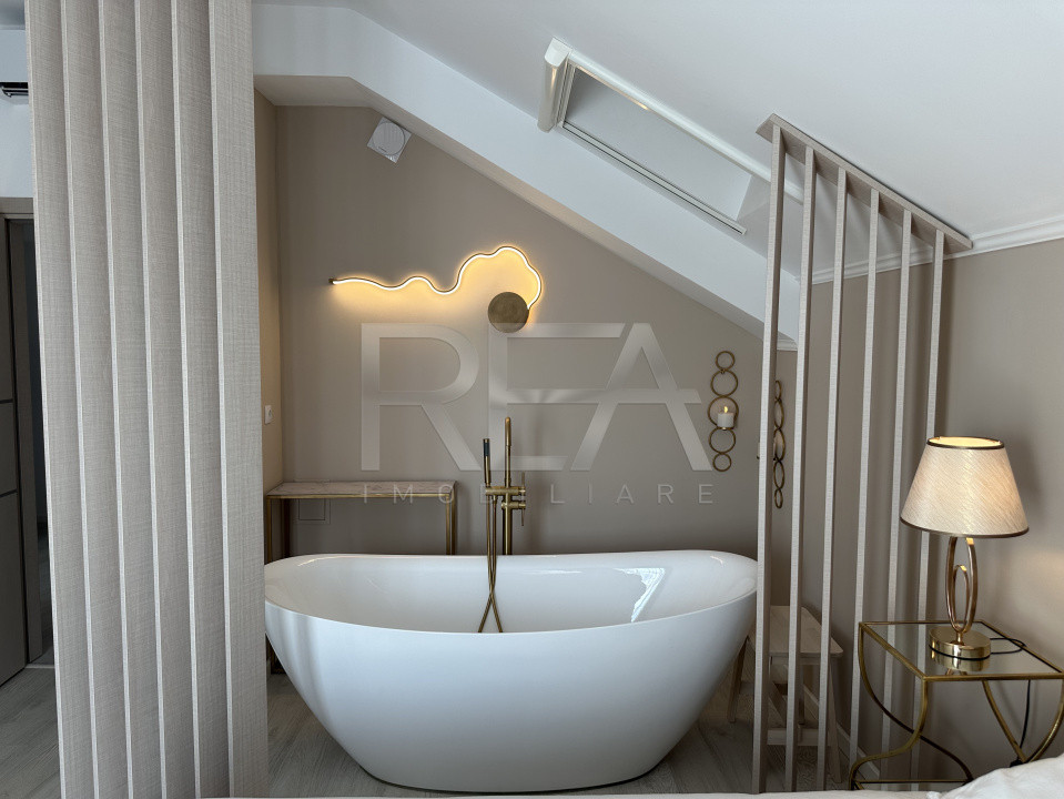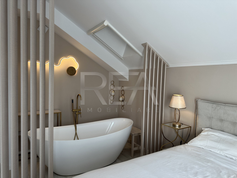 -Două dormitoare amenajate cu atenție la detalii, dintre care unul beneficiază de o zonă wellness cu cadă freestanding integrată elegant în spațiul de dormit;