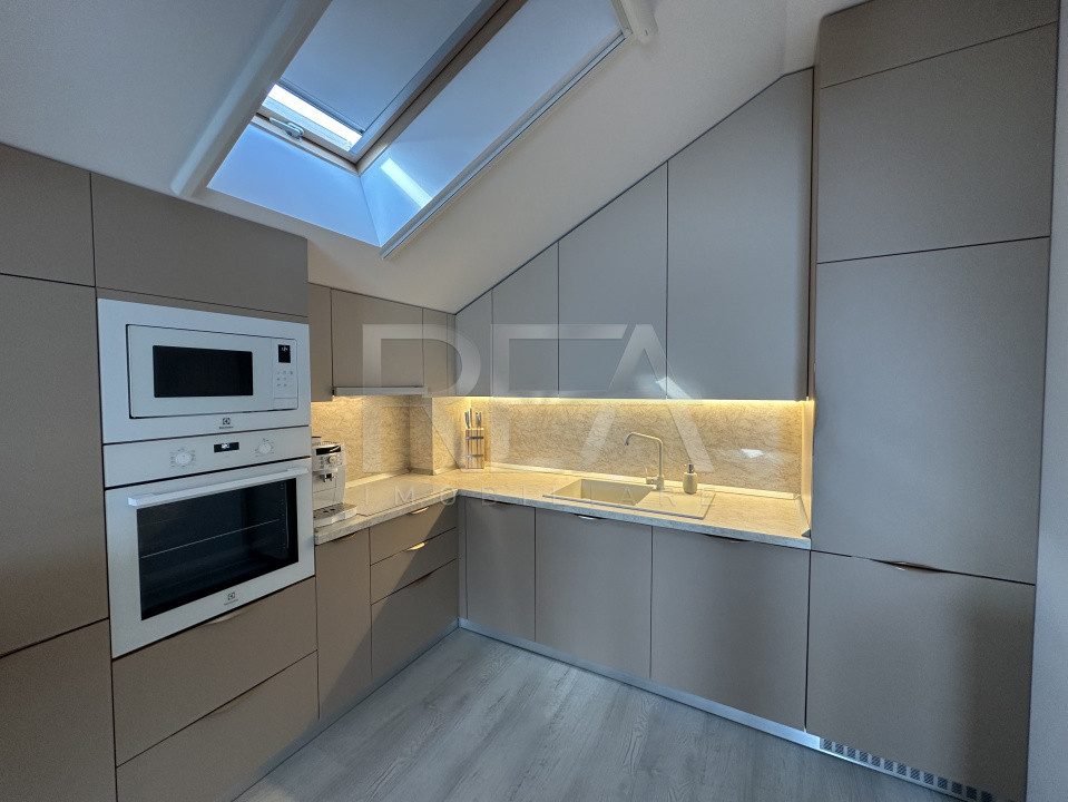Apartament cu 3 camere, vedere panoramică, mobilat de designer – mansardă, finalizat 2021.