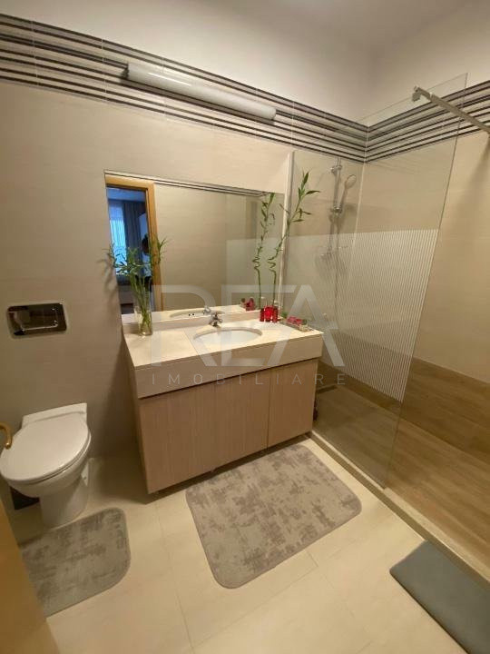 Apartamentul este complet finisat, dispune de centrală proprie, aer condiționat, geamuri termopan, parchet de calitate, iar locul de parcare subteran este inclus în preț — un avantaj important pentru zona Herăstrău.