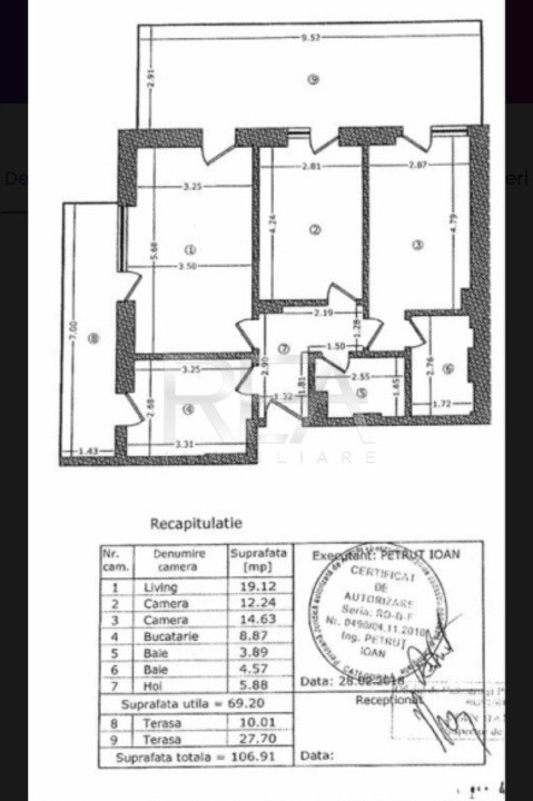 Imobilul se afla intr.un bloc de apartamente construit in anul 2016, la etajul 3/11. Detine o suprafata totala de 107mp, din care suprafata utila este de 70mp. Locuința dispune de un balcon generos de 10 mp și o terasă spectaculoasă de 27 mp, unică în complex, închisă cu geamuri și dotată cu pergolă electrica, perfectă pentru momente de relaxare. Apartamentul include un living spațios, doua dormitoare confortabile, o bucătărie modernă, dar si doua bai. Este un apartament ideal pentru cei care caută confort și funcționalitate. Se vinde mobilat si utilat.