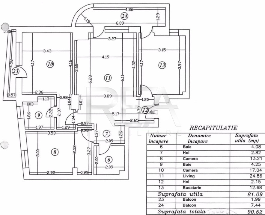 - Suprafață totală de 90,52 mp: 81,09 mp utili+ 1,99 mp balcon+ 7,44 mp balcon.