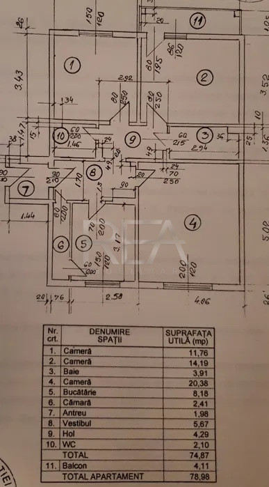 📐 Apartamentul se află la etajul 3 al unui imobil construit în 1988 și are o suprafață totală de 78,96 mp. Configurația decomandată, tip H, oferă o compartimentare practică și ușor de adaptat, având: