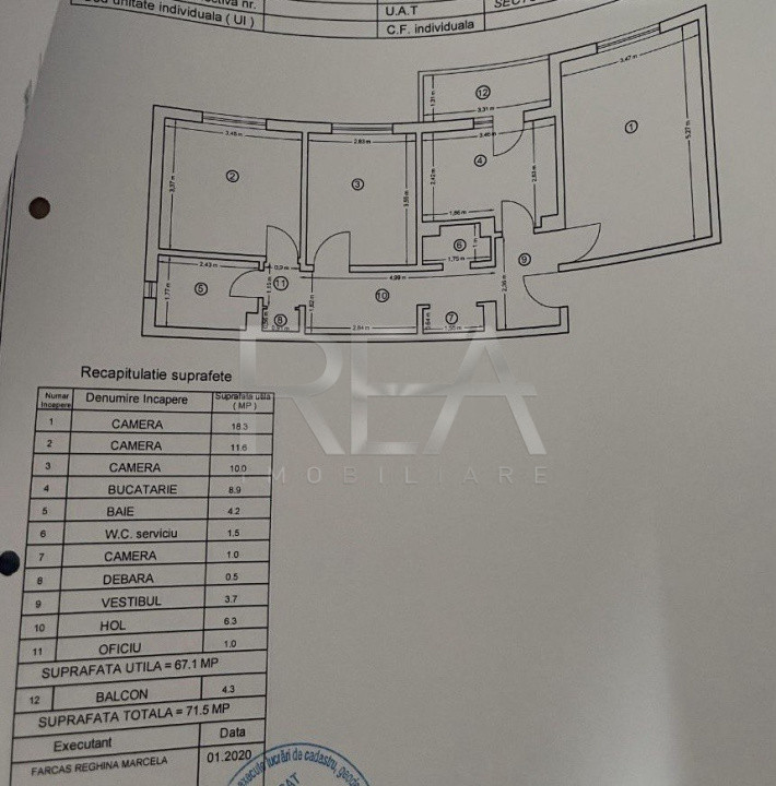 - Compartimentare: living, 2 dormitoare, bucătărie închisă, balcon, hol si 2 bai.
