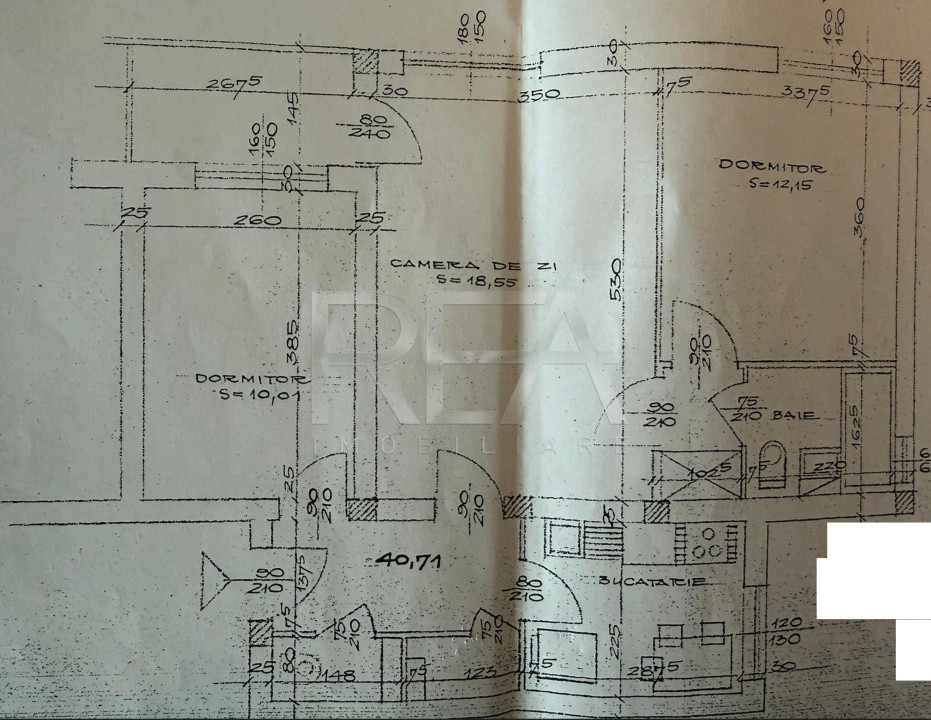 Compartimentare: living, două dormitoare, bucătărie, baie și balcon.
