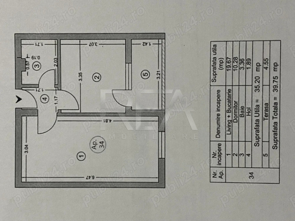 Detine o suprafata totala de 55mp din care utili 50mp si un balcon de 5mp.