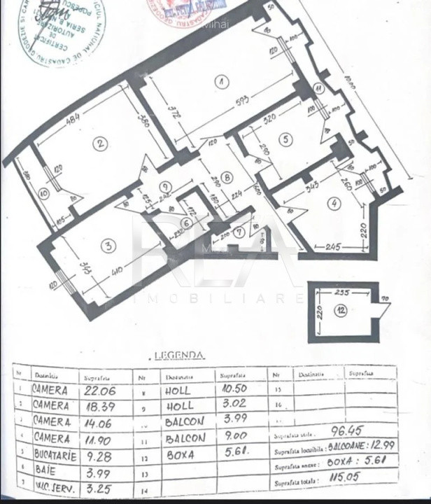 Suprafață totală de 115,74 mp, din care suprafață utilă 96,45 mp și balcoane 12,99 mp.