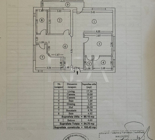 Suprafață totală 84,70 mp, utilă 80,10 mp, balcon de 4,60 mp și curte privată de 41 mp.