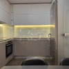 Bucătăria are blat din quartz, chiuvetă din siligranit și mobilier realizat la comandă din MDF, cu iluminare LED integrată.