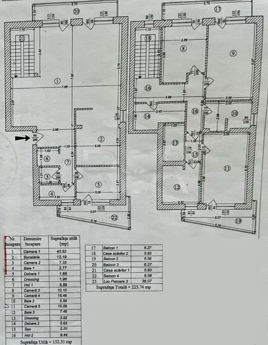 - Suprafata totala de 189,67 mp: 152,31 mp utili+ 4 balcoane+ casa scarii din interiorul apartamentului.