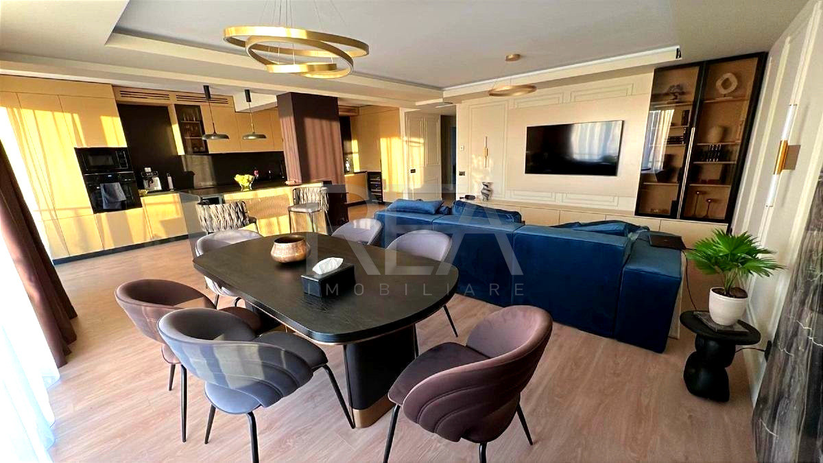 Livingul impresionează prin generozitatea spațiului și accesul direct către terasă. Este integrat cu o bucătărie modernă, open-space, ce se întinde pe o suprafață totală de 53 mp. Aceasta este echipată complet cu aparatură de ultimă generație – cuptor, plită, hotă, frigider, congelator și frigider pentru vinuri. O insulă concepută special separă vizual bucătăria de zona de dining, oferind totodată un punct de legătură între cele două.
