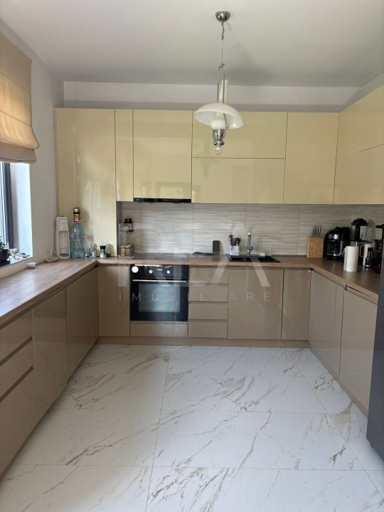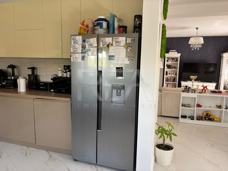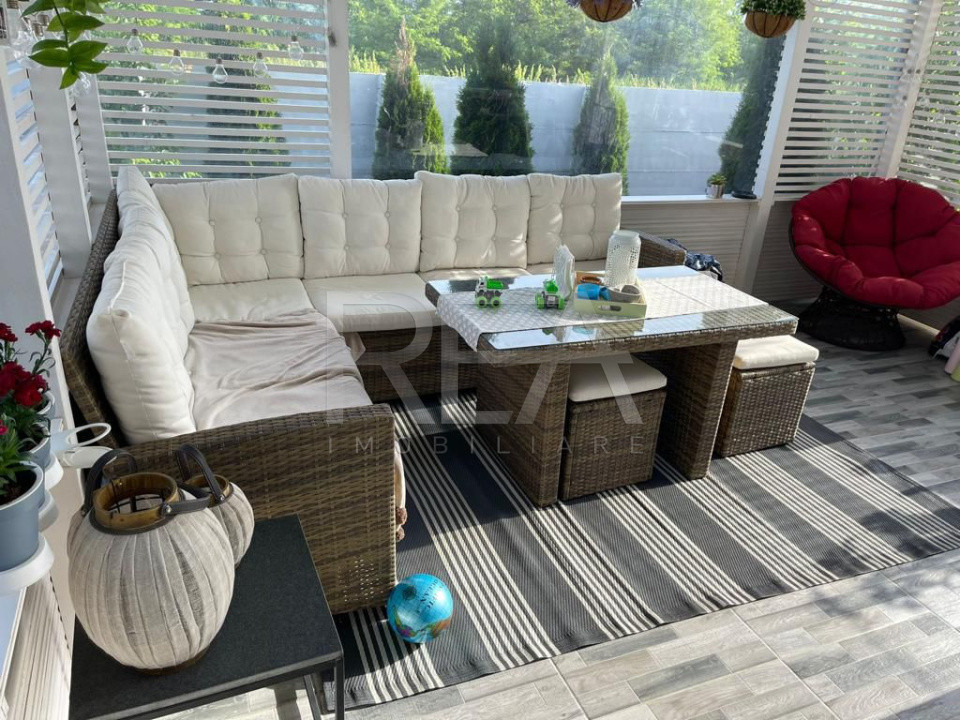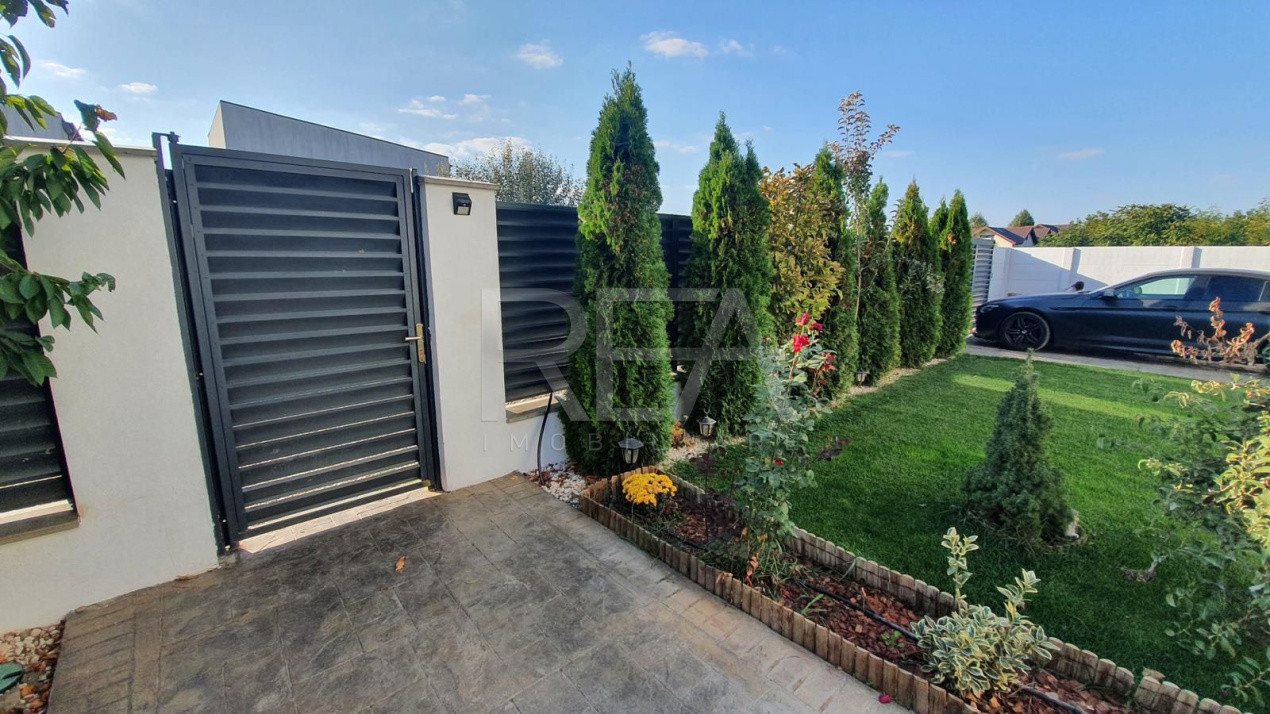 Dotări: încălzire în pardoseală, centrală pe gaz, aer condiționat inverter, tâmplărie tripan, porți automatizate, puț propriu cu sistem de filtrare, internet.