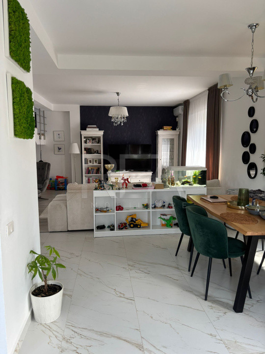 Construită în 2018, vila se află pe un teren de 367 mp și are 131 mp utili. Compartimentarea este modernă și eficientă: