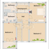 Locuinta este alcatuita din: 3 dormitoare, un living, 3 bai, o bucatarie.
