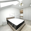 Locuința este organizată pe două niveluri plus un pod mansardat, toate distribuite eficient. Parterul găzduiește un living amplu, o bucătărie modernă și o baie. La primul etaj se află un dormitor matrimonial cu baie privată, alături de un al doilea dormitor, de asemenea prevăzut cu baie proprie. Ultimul nivel oferă un al treilea dormitor cu baie, precum și un spațiu deschis generos, ideal pentru zone de relaxare, lucrat de acasă sau activități pentru copii.