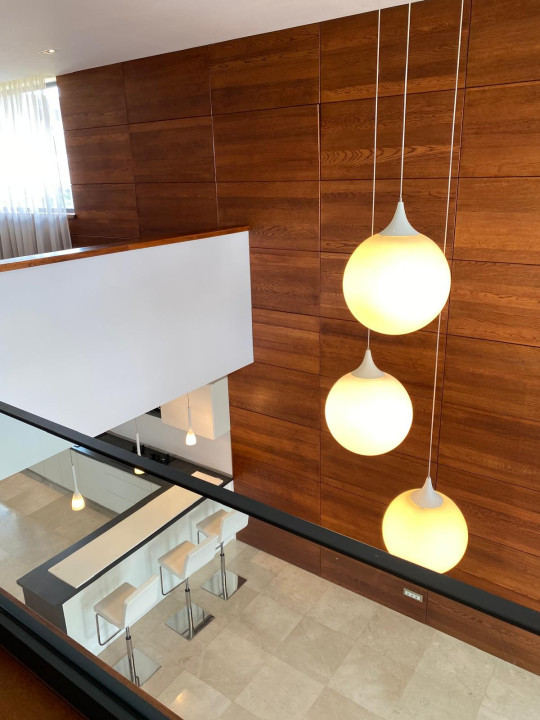 Locuinta este alcatuita din:subsoL(ccamera tehnica +depozitare), parter (living, bucatarie, garaj, baie, si terasas), etaj(3 dormitoare, birou, doua baie, dressing si doua terasa) .