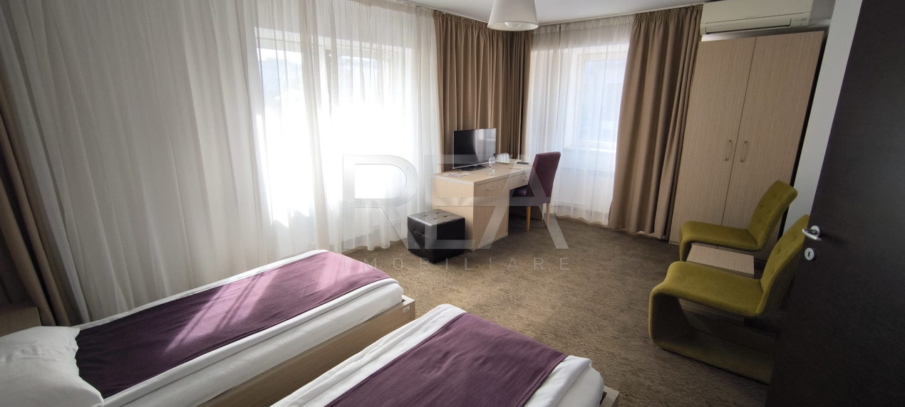 Hotel cu 100 de camere, finaliat in anul 1998. Suprafata totala de 3.211,43 mp din care suprafata utila de 3.161,40 mp. Sistem de incalzire: centrala proprie. Configuratie: 100 de camere, 34 bai, bucatarie, spatii de depozitare. Acces la transportul in comun ->7 minute pana la statiile STB si 20 de minute pana la statia de metrou Stefan cel Mare. Pentru detalii si vizionari, va rugam sa ne contactati specificand codul de identificare P8926.