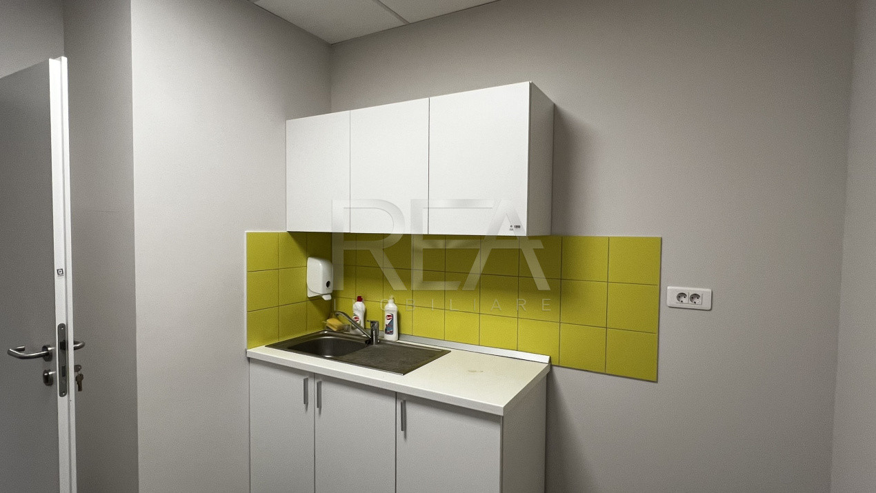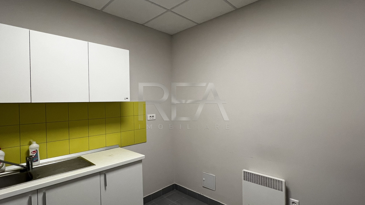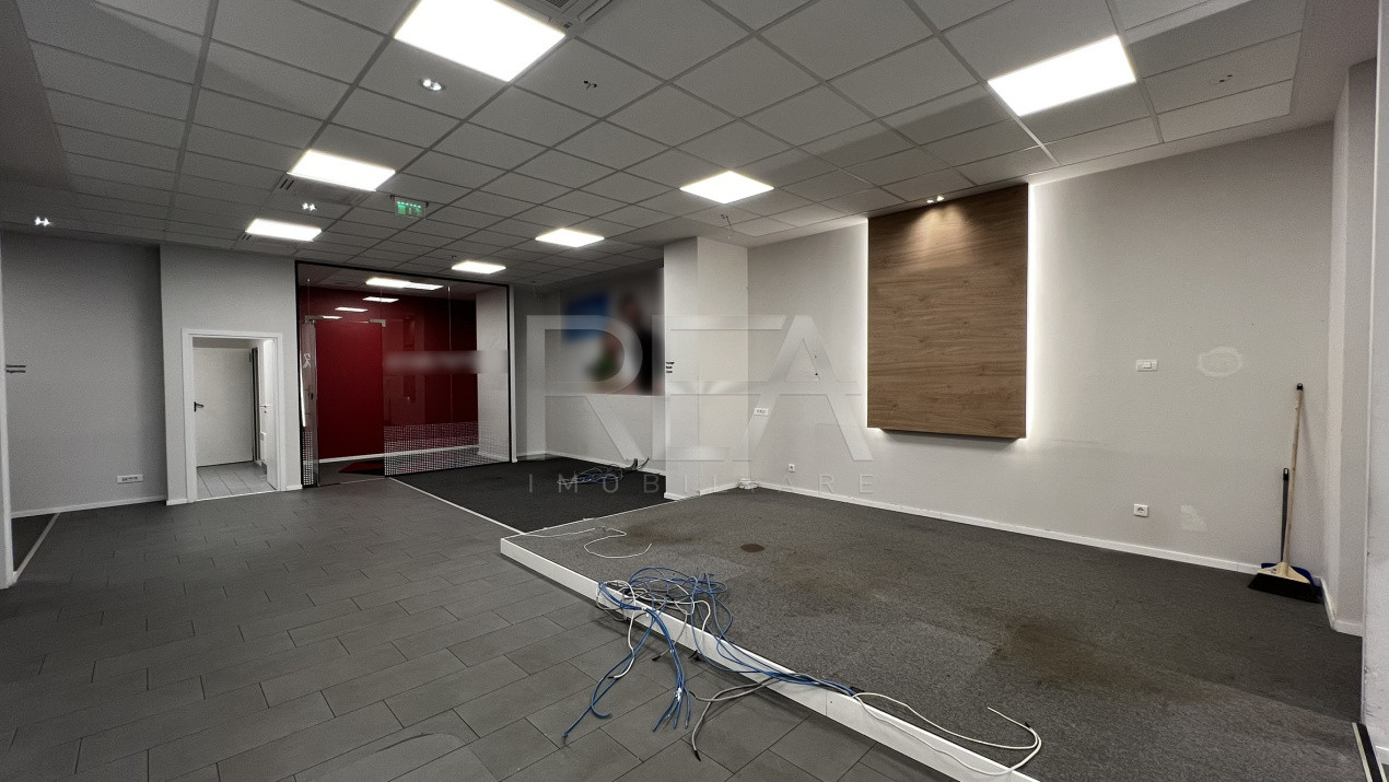 Interiorul este complet finisat, într-un stil neutru, profesional, cu tavane casetate moderne, iluminat LED uniform și economic, pardoseli ceramice elegante, pereți proaspăt vopsiți în culori deschise, zone de accent cu panouri decorative iluminante
