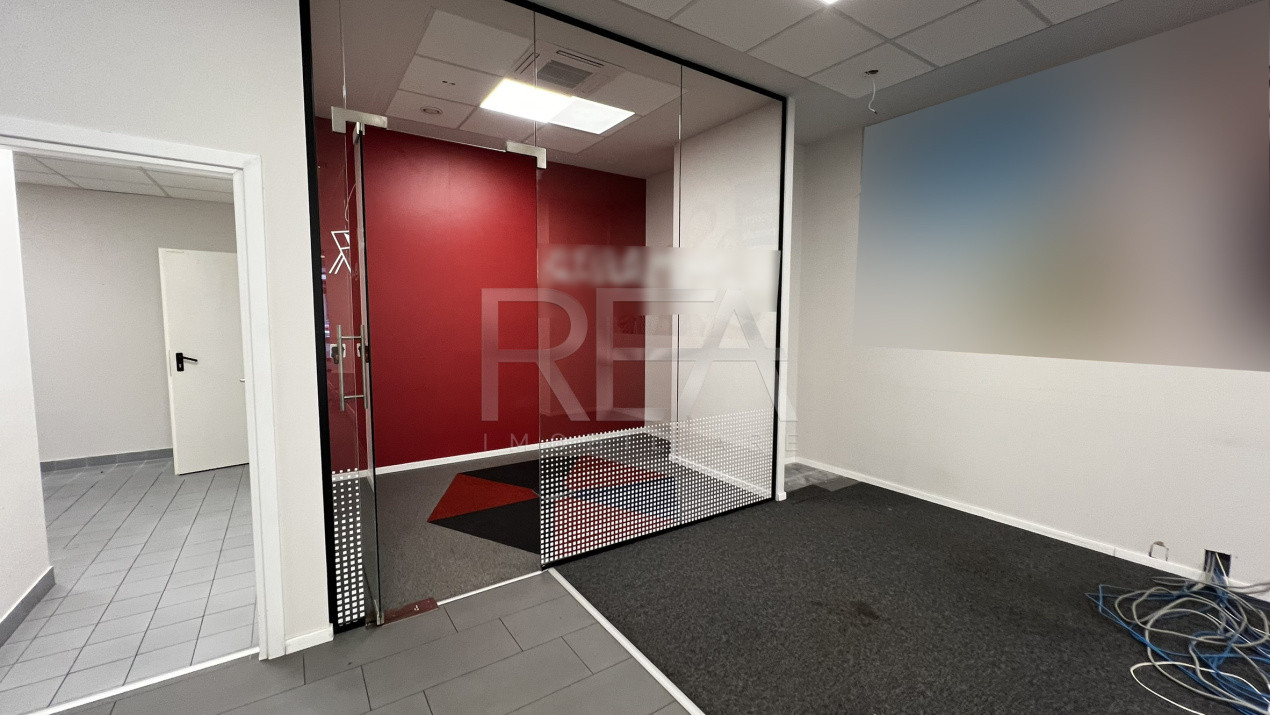 Imediat după intrare, spațiul impresionează prin fațadă vitrată pe întreaga lățime a spațiului.